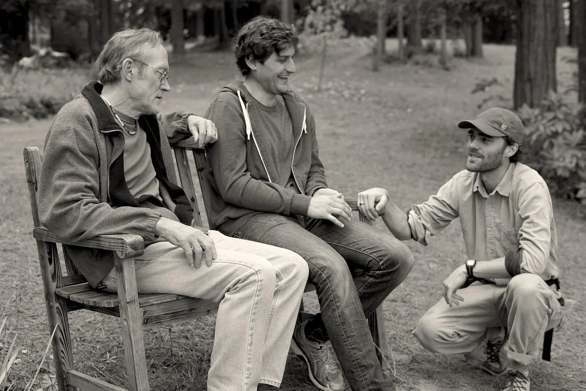 Actors James Carpenter, Josh Schell, and writer/director Eric Daniel Metzgar on set.
